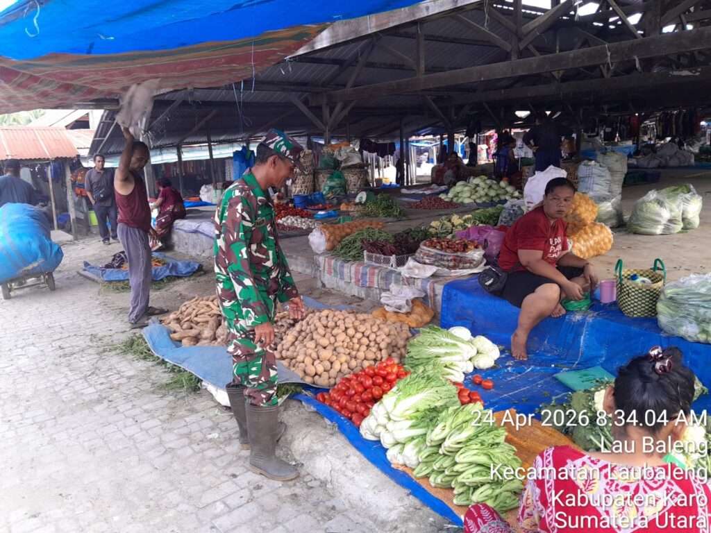 Karo, Jurnaliskaro.com,- Guna memastikan ketersediaan stok sembako, Koramil 09 Lau Baleng Kodim 0205 Tanah Karo untuk memantau stok ketersediaan sembako di pasar tradisional di Desa Lau Baleng Kec. Lau Baleng, Kab. Karo, Jumat (24/04/2026) siang.