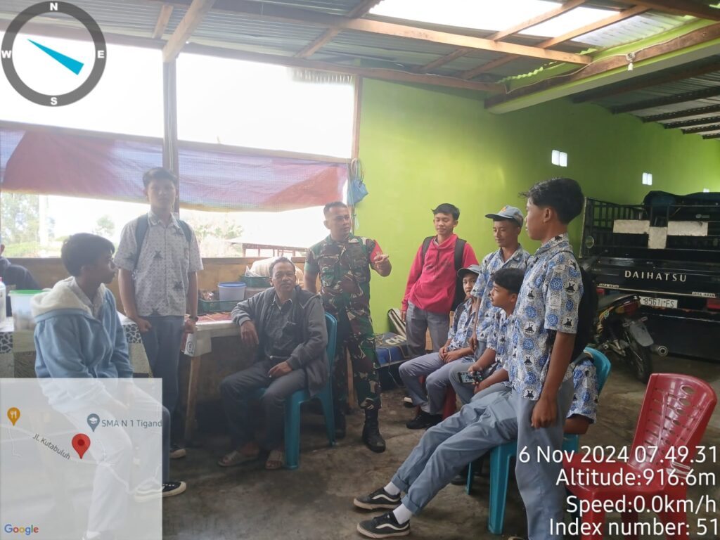 Karo, Jurnaliskaro.com,- Dalam rangka menjalin sinergitas dan silaturahmi, Koramil 05 Payung Kodim 0205 Tanah Karo melaksanakan kegiatan Komsos di Sekolah SMA Negeri 1 Tiga Nderket, di Desa Perbaji Kec. Tiga Nderket, Rabu (06/11/2024) siang.