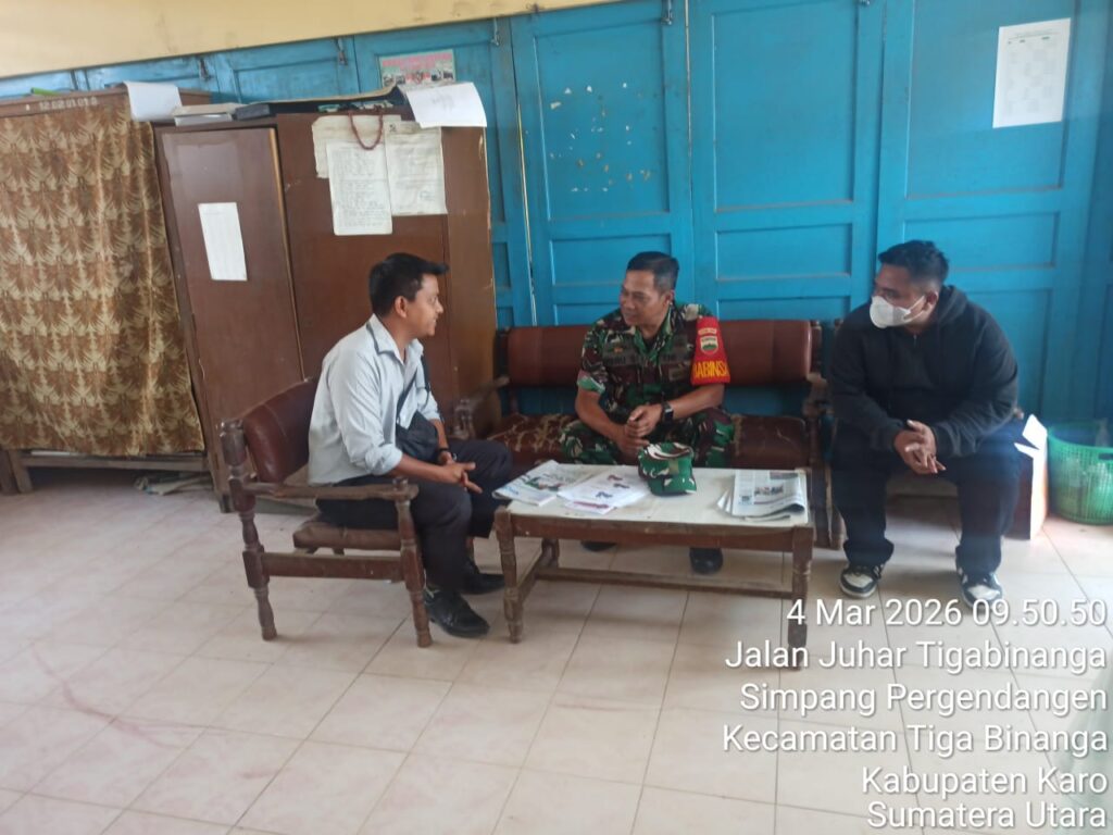 Karo, Jurnaliskaro.com,- Jalin sinergitas, Koramil 08 Tiga Binanga Kodim 0205 Tanah Karo melaksanakan kegiatan Komunikasi Sosial (Komsos) bersama dengan pihak sekolah SD Negeri 048233 di Kec. Tiga Binanga, Kab. Karo, Rabu (04/03/2026) siang.