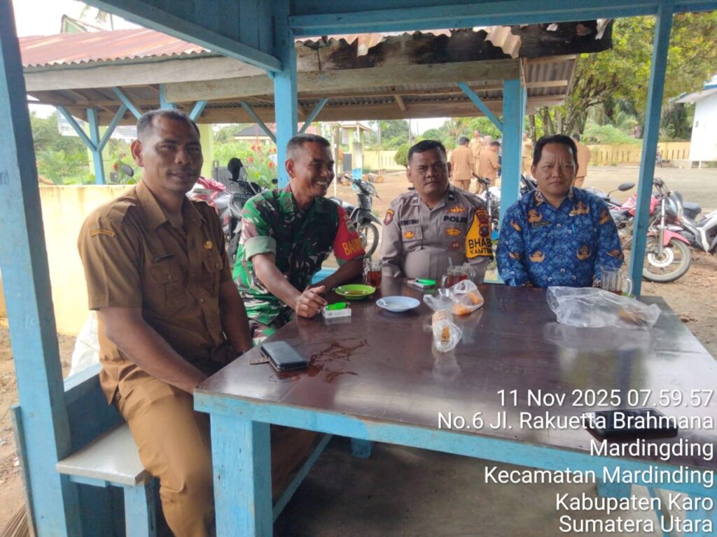 Karo, Jurnaliskaro.com,- Untuk menciptakan situasi yang aman, dan kondusif, Koramil 09 Lau Baleng Kodim 0205 Tanah Karo melaksanakan Komunikasi Sosial (Komsos) di Desa Mardinding Kec. Mardinding, Selasa (11/11/2025) siang.