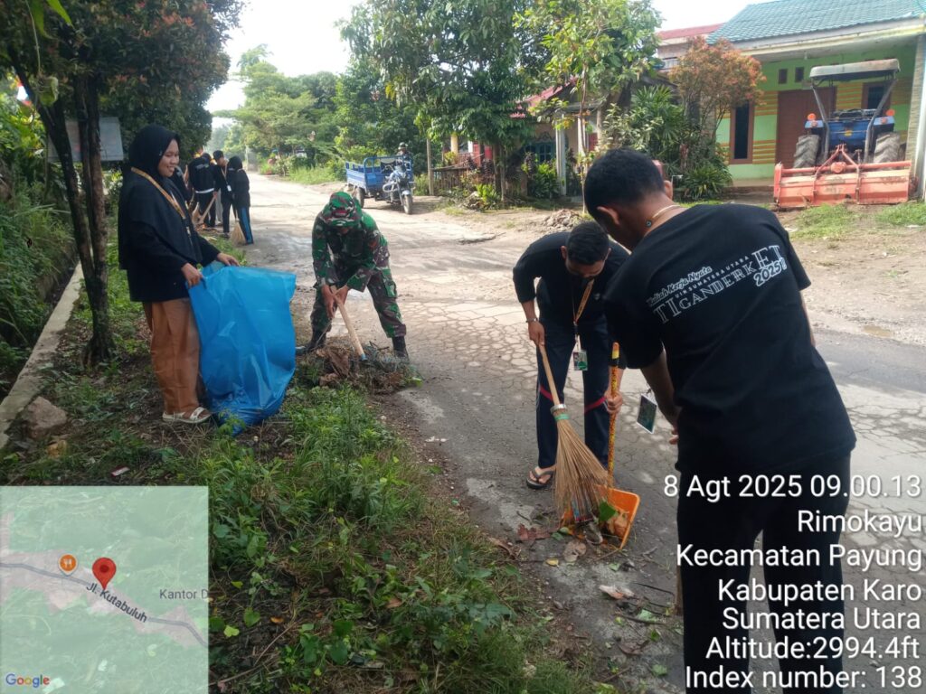 Karo, Jurnaliskaro.com,- Ajarkan ciptakan lingkungan yang bersih dan sehat, Koramil 05 Payung Kodim 0205 Tanah Karo bersama dengan warga melaksanakan gotong royong membersihkan lingkungan di Desa Tiga Nderket Kec. Tiga Nderket, Jumat (08/08/2025) siang.