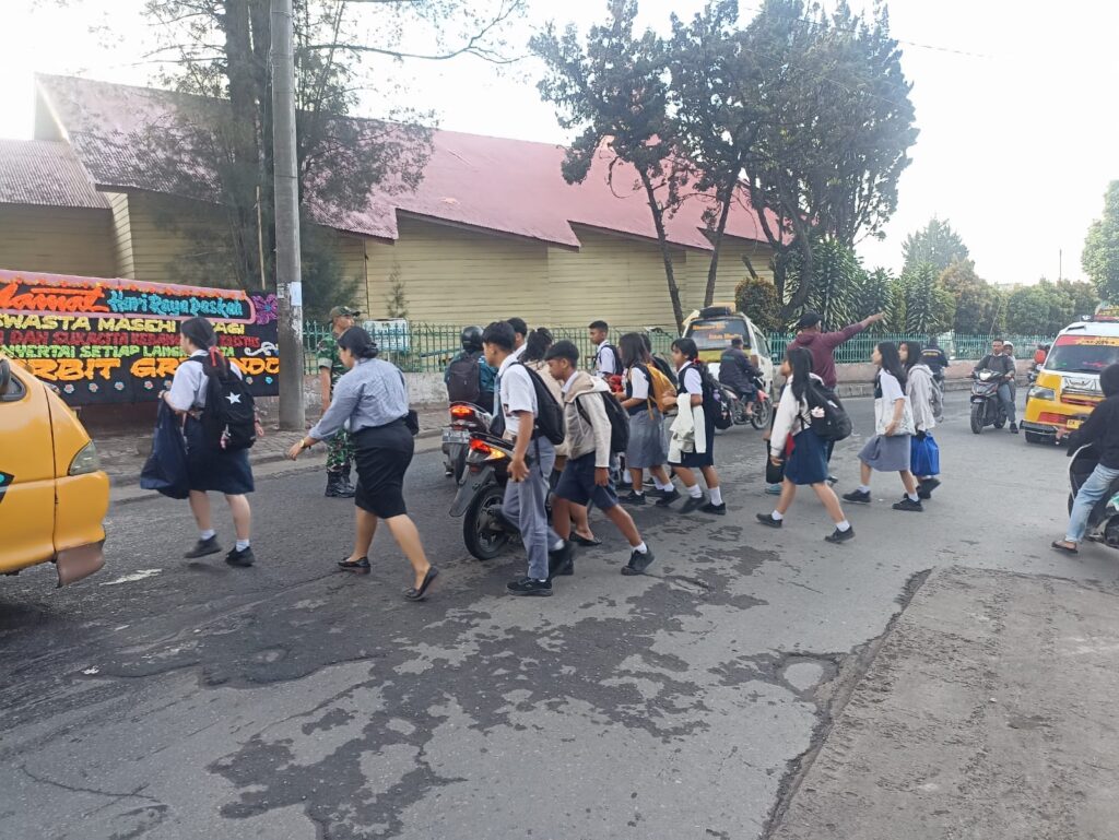 Menurut Babinsa Koramil 03 Berastagi Sertu Waluyo Widodo, kegiatan ini adalah untuk menjaga arus lalu lintas agar tidak semrawut, dan juga mengantisipasi adanya kecelakaan saat anak sekolah akan melintas.