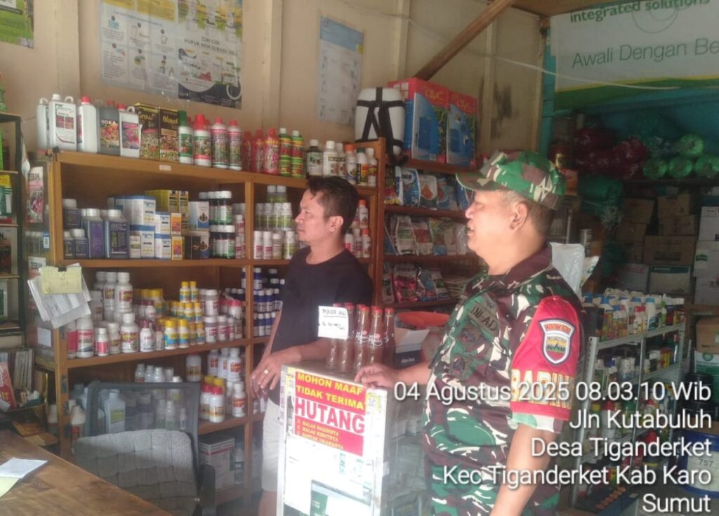 Karo, Jurnaliskaro.com,- Dalam rangka mendukung program pemerintah dalam bidang ketahanan pangan, Koramil 05 Payung Kodim 0205 Tanah Karo melaksanakan kegiatan pengecekan ketersediaan pupuk bersubsidi dan non subsidi serta obat obatan pertanian di toko pupuk di Desa Tiga Nderket Kec. Tiga Nderket, Senin (04/08/2025) siang.