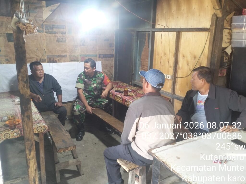 Karo, Jurnaliskaro.com,- Untuk menciptakan situasi yang aman, kondusif dan bersih, Koramil 06 Munte Kodim 0205 Tanah Karo melaksanakan Komunikasi Sosial (Komsos) bersama warga di Desa Kutambaru Kec. Munte, Karo, Selasa (06/01/2026) siang.
