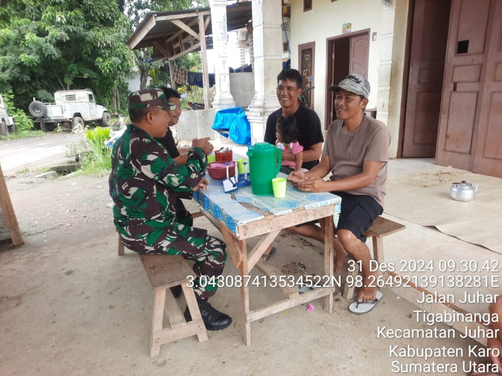 Karo, Jurnaliskaro.com,- Untuk menciptakan situasi yang aman, Koramil 07 Juhar Kodim 0205 Tanah Karo melaksanakan Komunikasi Sosial (Komsos) di Desa Keriahen Kec. Juhar, Selasa (31/12/2024) siang.
