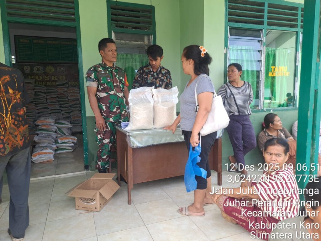 Koramil 07 Juhar Giat Pendampingan Pendistribusian Bantuan Pangan dari Pemerintah melalui Bulog