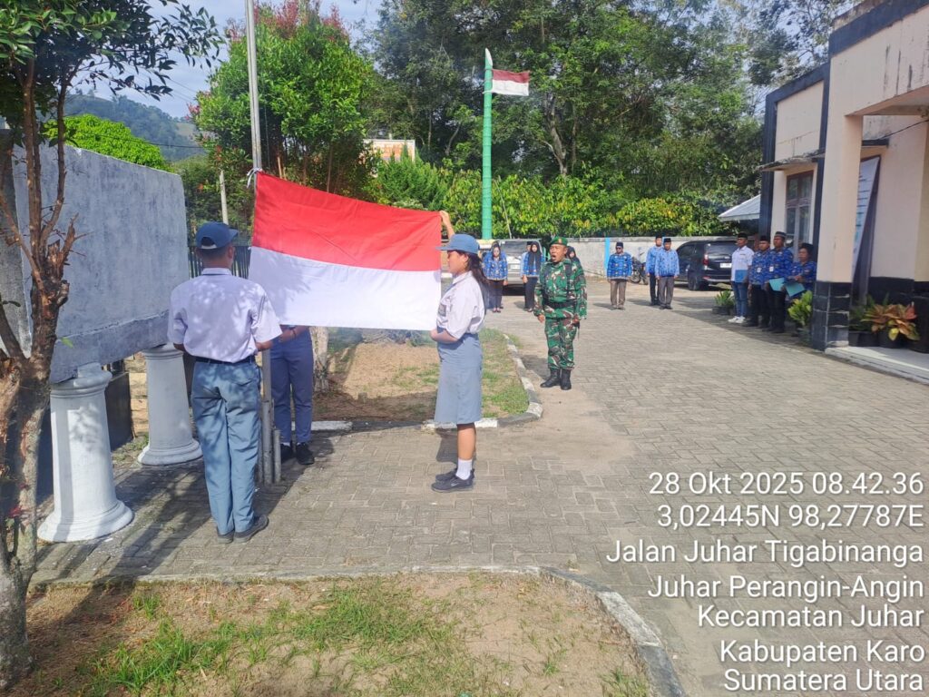 Karo, Jurnaliskaro.com, – Koramil 07 Juhar Kodim 0205 Tanah Karo bersama dengan Forum Komunikasi Pimpinan Kecamatan Juhar dan masyarakat melaksanakan kegiatan upacara di lapangan Kantor Camat Juhar di Desa Juhar Kec. Juhar, Selasa (28/10/2025) pagi.