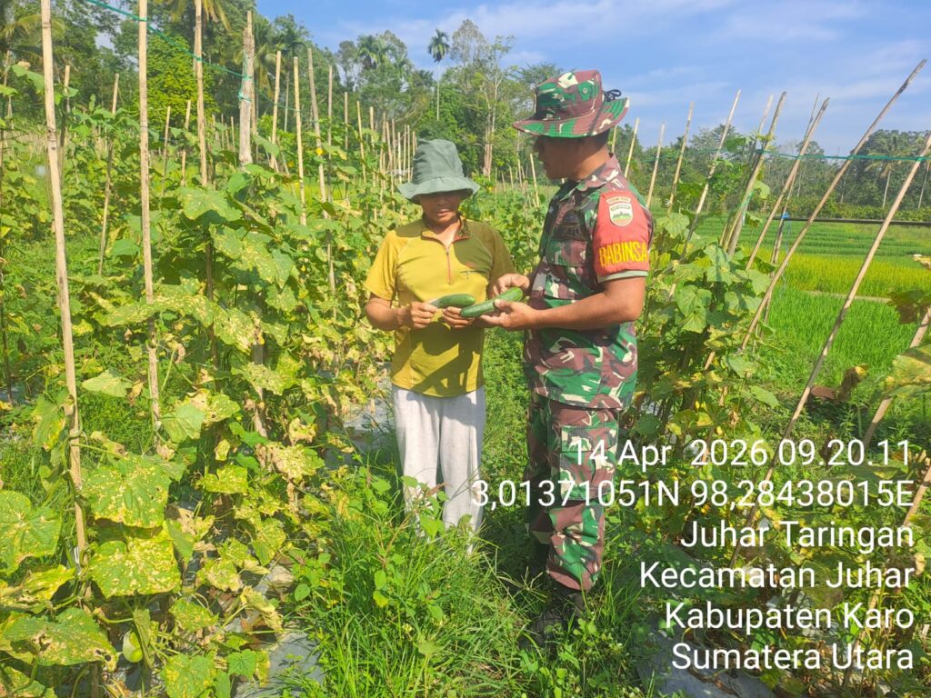 Karo, Jurnaliskaro.com,- Dukung Program Pemerintah dalam Bidang Ketahanan Pangan, Koramil 07 Juhar Kodim 0205 Tanah Karo laksanakan giat pendampingan peningkatan hasil pertanian di Desa Juhar Tarigan Kec. Juhar, Kab. Karo, Selasa (14/04/2026) siang.