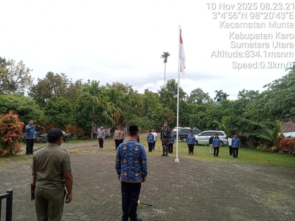 Karo, Jurnaliskaro.com,- Untuk mengenang jasa para Pahlawan yang telah gugur di medan perang, Koramil 06 Munte Kodim 0205 Tanah Karo bersama dengan Forum Komunikasi Pimpinan Kecamatan Munte melaksanakan kegiatan peringatan Hari Pahlawan di depan Kantor Camat Munte di Kec. Munte, Senin (10/11/2025) pagi.